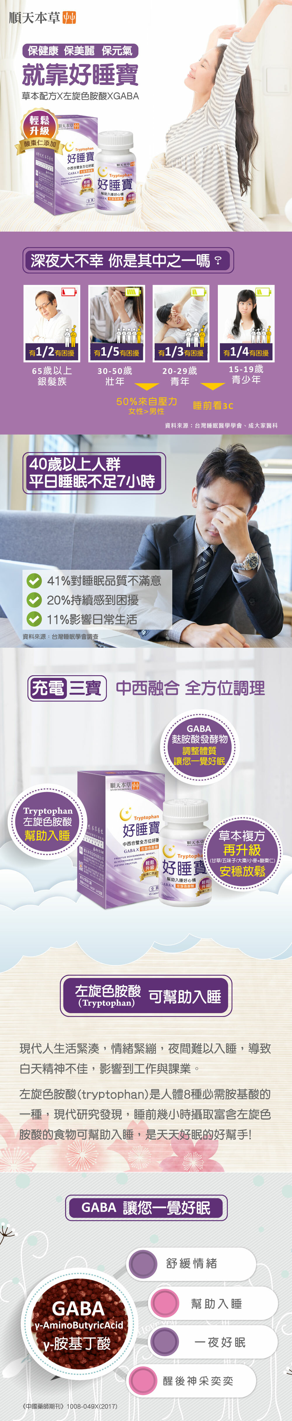 成分:麩胺酸發酵物(含GABA)、色胺酸、檸檬酸鈣、酸棗仁、五味子、馬鈴薯澱粉、小麥、甘草、紅棗、百合、芝麻、硬脂酸鎂、二氧化矽